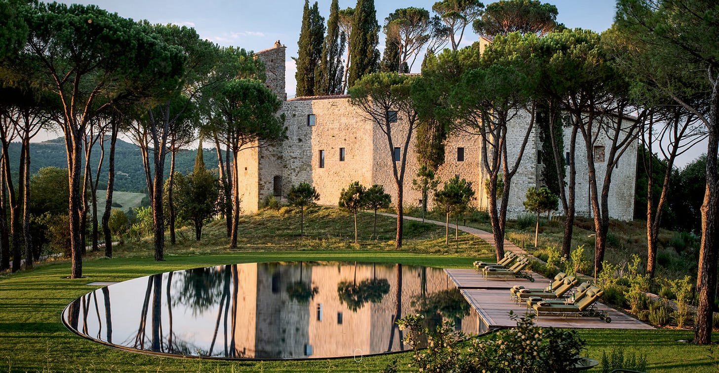Is it staying at Alexander Calder’s house? Staying in a storybook? Staying where everyone else stays? (The best sea-facing room at an Instagram famous hotel?) The vague promise of truffle hunting at a resort run by aristos in Umbria? A visit to the wine cellar of an anarchist selling under-the-table ice wine? Taking this guidebook to Key West? What about a private-ish beach in Milos? Is perfect weather enough? Or is it about the unknown medieval town with a great restaurant? A sand beach on an archipelago with a government travel warning? A swimming cove that is really just a hidden slab of city pavement devoid of tourists? A house designed by Frank Lloyd Wright? Should one make a conscientious effort to get off the grid? Or is it as simple as an outfit curated by Jess Graves, a cheap travel steamer recommended by Alexis Page, and hyper-vigilant guest curation? (People say it’s about matching vacation styles—don’t mix game players, rock climbers, and drunks—but I think it’s about finding excellent cooks who will do the dishes and buy things without making a fuss.)